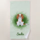 Blenheim Cavalier King Charles Spaniel On Green Beach Towel