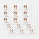 Destei's original cartoon illustration of a cute blenheim colour Cavalier King Charles Spaniel breed dog. The dog is placed nine times on each sheet. The background has a pattern of grey dog paw prints.