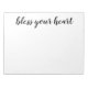 This 11 x 8.5 notepad that says "Bless Your Heart" in beautiful script font in black is perfect for anyone! With it's lovely print it would look wonderful on any desk!