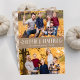 Rustic thanksgiving photo card featuring "Blessed and Grateful" displayed in white handwritten text with a brown kraft paper background. Personalise the front of the cute Thanksgiving card by adding two of your favourite photos, your names, and the year. The card reverses to display two additional photos, your custom message, and a watercolor plaid pattern in shades of brown and beige.