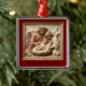 This keepsake ornament portrays a tender nativity tableau: two angels in flowing robes, crowned with grace, gazing upon the Holy Child nestled in straw. White roses bloom at the corners, symbols of purity and eternal devotion. The cracked, vintage texture evokes timeless reverence, as though this piece were carried through generations of prayer. Hung upon the tree, it becomes not only decoration but a blessing—an emblem of peace, guardianship, and divine love.