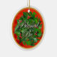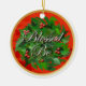 Varing shades of green holly leaves, bright red berries on a red satin background make up this beautiful and colourful seasonal wish of Blessed Be for the Yule holiday season.