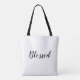 Blessed black and white custom script calligraphy cute Tote Bag.