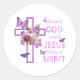 Blessed by God Saved by Jesus Purple Floral Cross Classic Round Sticker