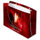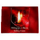 The reflected flame of a single red candle glows brightly on the front of this design, covered in a look of textured foil in a deep, deep red. "Wishing You A Blessed Holiday Season" is in a pale gold script font on the picture, front and back. The red candle, its flame and reflected flame and star-filled black and red muzzy background blend into a background of deep red foil.. The inscription, "Wishing You A Blessed Holiday Season" can be edited easily to anything you like. Just hit "Personalise" and get started. Or delete it entirely, if you prefer.