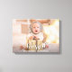 This charming stretched canvas features the word BLESSED in a beautiful white script and any information you want below in any font and font colour on your favourite photo.