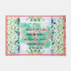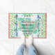 "Blessed shall you be when you come in, and blessed shall you be when you go out" (Deuteronomy 28:6) bible quote welcomes you home on this beautiful green/ aqua, pink and purple doormat surrounded with faux lace trim and paisley. A pink heart with a cross shows your faith.