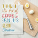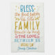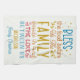 This kitchen towel displays the prayer that so many families have embraced through the years. "BLESS the food before us, the FAMILY beside us and the LOVE between us." Add your own family name, and the event (Christmas, Thanksgiving, Reunion, Easter, etc.) at the bottom. Colours used include sky blue, orange brown, gold, and red.