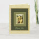 Beautiful green tone card with image of the Virgin Mary with the child Jesus, holding a rosary.
