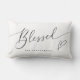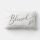 Modern and simple pillow for a happy family! The typography text says "Blessed" in a script font with a heart. You can add your family name at the bottom.