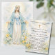 Remember your loved ones in prayer with this beautiful personalized traditional Catholic religious memorial holy card of the Blessed Mother Mary (Our Lady of Grace) with yellow floral design.