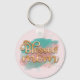 Blessed Mum Teal Pink and Gold Glitter Typography Key Ring