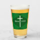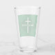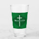 This beautiful green glass tumbler features a white cross and customisable text.