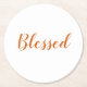 Blessed orange spice and white script calligraphy cute thanksgiving party Paper Coasters.