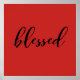 This poster has a red base and says blessed in black font. Add a frame and make this an elegant piece.