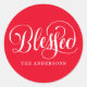 Dress up your holiday envelopes with our Blessed Script holiday stickers. The festive stickers feature the word Blessed in a white chalk, hand-lettered script with your name or other custom text against a bright red background.