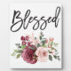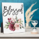 Simple saying blessed quote in modern script with burgundy and coral peony flowers.