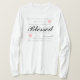 I love this shirt. I had written to the artist asking her if this picture was available on a shirt, and she wrote me back telling me where I could find the shirt. These shirts can be custom made to have a different saying. I loved this saying and went with it. The artist wrote me back later to tell me that she had seen my order go through. How's that for service? Pretty special. It's just as displayed. Perfect!