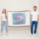A quality printed throw has its advantages. This is a much finer weave throw than its loopier cousins, and though lighter, it is worth the investment for custom room accessorizing. The back is much prettier than the typical brown, and the fringe on the long sides very vivid, the selvage nicely done. Before photographing, I washed the throw in cold water, delicate, with a thicker woven throw the same size. On tumble dry low, this throw was dry in half the time as the other. This is a very practical quality if you use throws for furniture covers or to wrap up in frequently. The sleekness of the fabric makes it a great layer for accenting or protecting without the feeling of sitting on too much stuff. Perfect for napping or when you feel a light chill coming on. The color printing is beautiful and on this fabric, matched the design and color of my Photoshop image. This is an advantage for blending room fabrics and colors. The fringe on the short sides prints the colors from the design image and therefore varies from the side fringe. I streaked a white fractal line through the plaid pattern to give the illusion of weaving. This printed as crisp as an illusory thread, and put some white in the short side fringe, showing another advantage of print vs loomed- for artistic purposes, line lines, detail, and color integrity can be planned and preserved. My loomed throws have color limitations and more of a needlepoint texture. Print throws reproduce an exact image. The throw felt a little stiff straight out of the package, but this went away in the first delicate wash. Of course I searched the wash water for ink or bleeding and there was none.