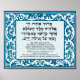 Here is "al netilat yadayim" - meaning "concerning the washing [or raising] of the hands" and is said first thing in the morning, before eating bread, and other specific events. This one has a blue floral theme, to "hidur l'mitzvah," that is, "beautify the mitzvah."