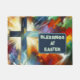 Blessings at Easter with a cross and Easter eggs and a colorful background, this Door Mat makes a beautiful gift for any Christian.