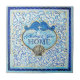 Blue & White Small Ceramic Tile to be used as bathroom / kitchen tile, or as a coaster. Inscri[ption: "Blessings to your Home" (Original available)