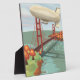 A blimp, or non-rigid airship, is a floating airship without an internal supporting framework, or keel. A non-rigid airship differs from a semi-rigid airship and a rigid airship (e.g., a Zeppelin) in that it does not have any rigid structure, neither a complete framework nor a partial keel, to help the airbag maintain its shape. Rather, these aircraft rely on both a higher pressure of the lifting gas (usually helium) inside the envelope and the strength of the envelope itself. The part underneath is called the buckle. This is a Blimp or Airship passing over The Iconic Golden Gate Bridge in Los Angeles USA. USA Blimp.