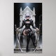 Unleash the power and mystery of a stylised warrior inspired by the iconic aesthetic of 2B from Nier:Automata. This artwork features a sleek, blindfolded female fighter in dark futuristic armour, posed with poise and deadly grace beside her katana. A perfect blend of gothic elegance and cyberpunk energy, with dramatic lighting and bold contrasts.