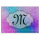 Bling Glitter Girly Pink Purple Teal Aqua Blue Glitz Glamour Monogram Initial Glass Cutting Board Personalised