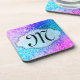 Bling Glitter Girly Pink Purple Teal Aqua Blue Glitz Glamour Monogram Initial Drink Coaster Personalised