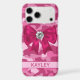 Customise this blingy pink camouflage iPhone 17 pro max case with your name in a trendy modern CAP font in dark pink on light pink. It's so blingy, girly and chic! Perfect for any country girl!