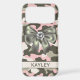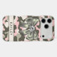 Customize this blingy pink, green and cream camouflage iPhone 17 pro max case with an olive green satin bow with a diamond center and your name in a trendy modern CAP font in dark green on cream. It's so girly, blingy and chic! Perfect for any country girl!