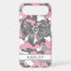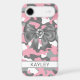 Customise this pink, grey and white camouflage iPhone 17 air case with a grey satin bow with a diamond centre and your name in a trendy modern CAP font in dark grey on white. It's so blingy, girly and chic! Perfect for any country girl!