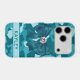 Customise this blingy teal camouflage iPhone 17 pro max case with a dark teal satin bow with a diamond centre and your name in a trendy modern CAP font in dark teal on light teal. It's so modern, girly and trendy! Perfect for any country girl!