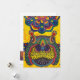 An extremely vibrant multicolored hippo set against brilliant yellow background.
