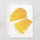Cheese comes in all sorts of shapes and flavours. This design is a block of cheese in a triangle shaped wedge. The cheese has two slices lying flat next to the block. The cheese has holes in it like swiss cheese. This block of cheese design looks great on these invitations