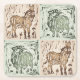 Block Print Sheep Donkey Quilt - farm animals. Square Paper Coaster
