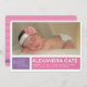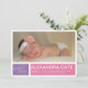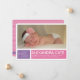 Share your happy news with this modern girls birth announcement from PiPo Press. Colourful blocks of purple and pink with a cheerful pattern on the back tell everyone how excited you are to welcome your baby girl! Personalise with your favourite photo of the new loved one and details of her birth and this announcement is ready to go.