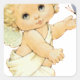 A cute blonde angel baby with curly hair and a blue butterfly.