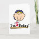 Baseball 5th Birthday t-shirts, mugs, magnets, cards, stickers, tote bags, and more featuring a blonde boy baseball player with blue cap, baseball, bat, and text that reads "I'm 5 Today!".