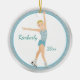 Blonde Figure Skater In Aqua Ceramic Tree Decoration