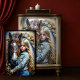 Decoupage_Boutique — Add a regal touch to your furniture or craft project with this richly detailed artwork featuring a blonde girl in a jewelled denim jacket alongside her deep-brown horse. Their shared gaze draws the viewer in, surrounded by a storybook-like ring of daisies, roses, and autumn leaves.