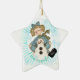 A blonde haired girl and a snowman with text that reads "I love snow!' on a double sided snowman ornament.