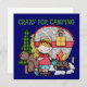 Girls who love camping will love this cute outdoors design featuring a blonde haired girl on a camping vacation, a bear, owl, camper, trees, and camp fire!