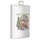 The product is a good size and came exactly as it was pictured. The lid is not attached to the flask, which could be dangerous on drunken nights... The print came out surprisingly well and looks very sharp. Would definitely recommend.
