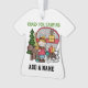 Girls who love camping will love this cute outdoors design featuring a blonde haired girl on a camping vacation, a bear, owl, camper, trees, and camp fire!