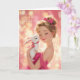 Blonde Girl in Hot Pink w/ Cute White Bunny BDay Card