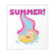 A cute design for summer, features a blonde haired girl in bathing suit and ring coming down the water slide and hot pink and blue text that reads SUMMER! Summer T-shirts, bodysuits, bibs, mugs, cards, bags, stickers, keepsakes, pillows, and much more.