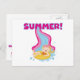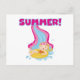 A cute design for summer, features a blonde haired girl in bathing suit and ring coming down the water slide and hot pink and blue text that reads SUMMER! Summer T-shirts, bodysuits, bibs, mugs, cards, bags, stickers, keepsakes, pillows, and much more.