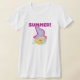 A cute design for summer, features a blonde haired girl in bathing suit and ring coming down the water slide and hot pink and blue text that reads SUMMER! Summer T-shirts, bodysuits, bibs, mugs, cards, bags, stickers, keepsakes, pillows, and much more.